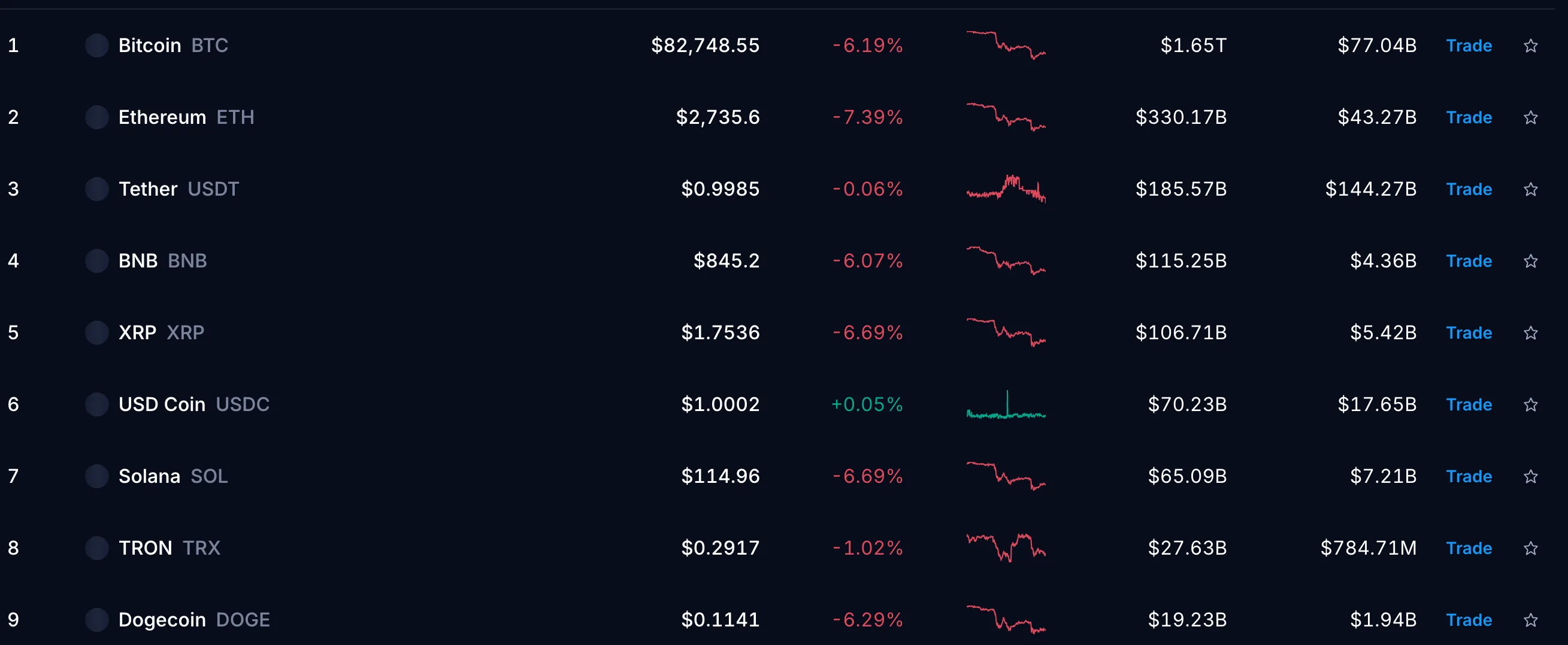 Bitcoin’дан кейинги энг йирик криптовалюта бўлган Ethereum нархи ҳам 6,7 фоизга пасайиб, 2 753 долларгача тушди. Бозордаги умумий салбий кайфият фонида бошқа криптоактивларда ҳам шунга ўхшаш пасайишлар кузатилмоқда.