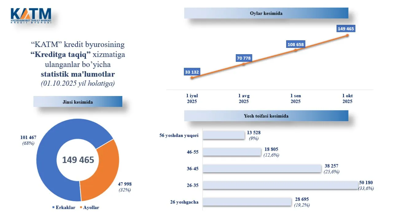 Маълумотларга кўра, 1-октабр ҳолатига 149 465 нафар жисмоний шахс бепул “Кредитга тақиқ” хизматига уланган.