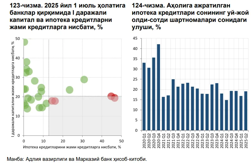 Ўзбекистон уй-жой бозорида сўнгги йилларда илк бор реал барқарорлашув кузатилди. Бозор ва фундаментал нарх ўртасидаги фарқ йил бошидаги 17 фоиздан 4 фоизгача қисқарди, таклиф кескин ошди, спекулятив талаб эса пасайди. Миллий валютада уй нархлари 4,9 фоизга, долларда 6,2 фоизга тушди. Шунингдек, иш ҳақлари 17 фоизга ошиб, уй-жой нархлари билан нисбати манфий даражага (-0,3) кирди.