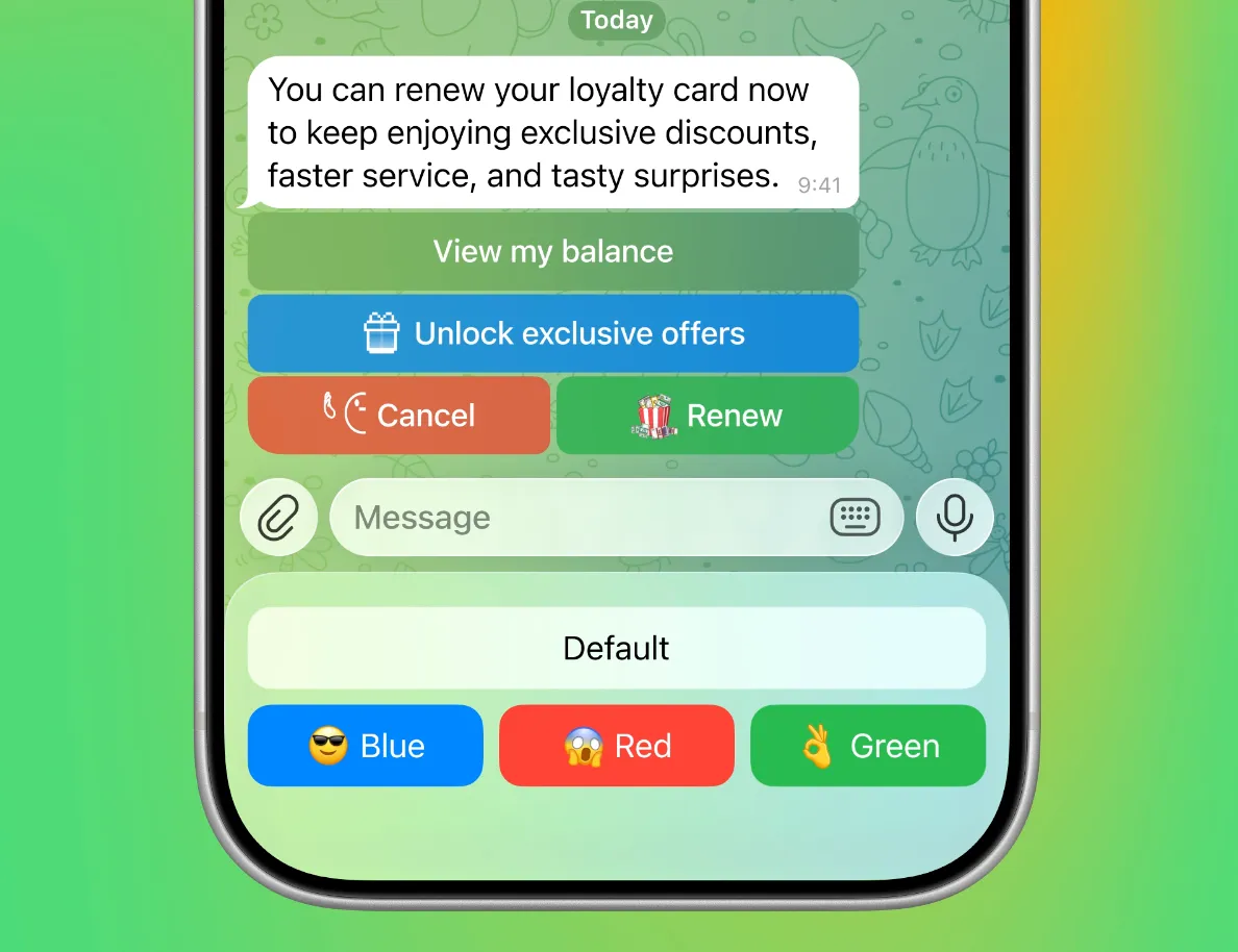 Теперь разработчики ботов могут оформлять кнопки цветами и эмодзи. Это позволяет сделать интерфейс более понятным или привлечь внимание пользователя к важным действиям.