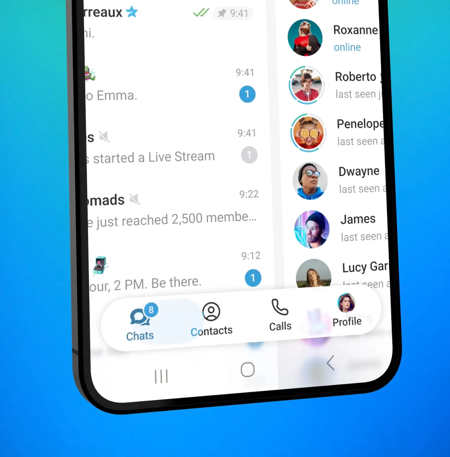 В Android-версии Telegram полностью обновлен интерфейс. С помощью новой нижней панели можно мгновенно переключаться между чатами, настройками, профилем и другими разделами.