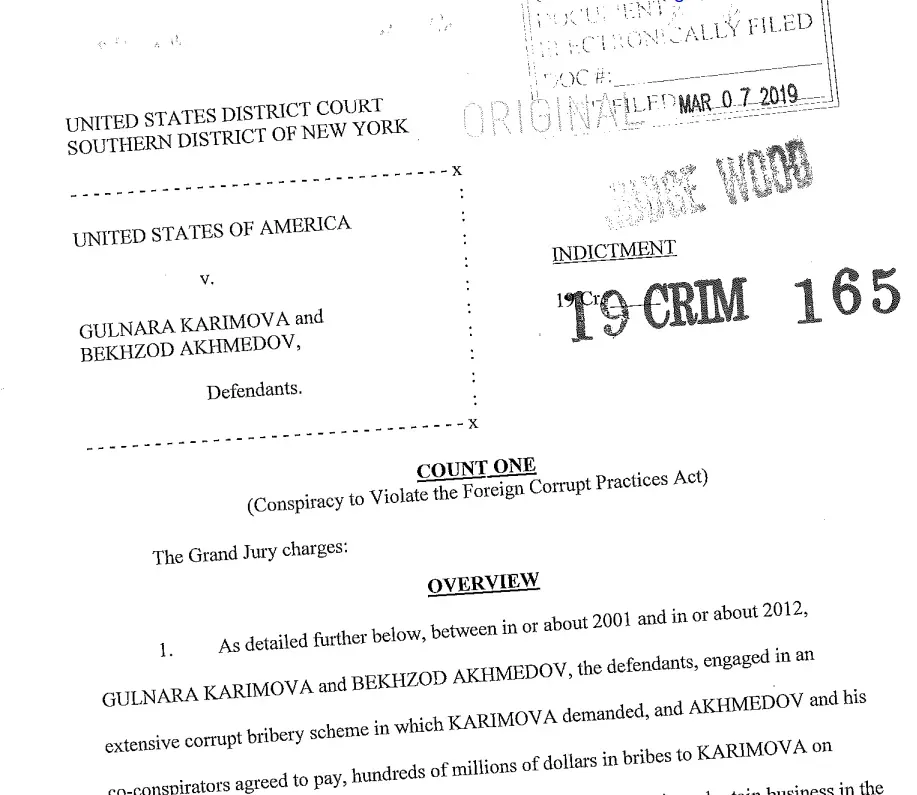 «С целью продолжения коррупционной схемы АКХМЕДОВ и КАРИМОВА совершали многочисленные платежи и “отмывали” их через подконтрольные Каримовой фирмы и офшорные счета. Большая часть транзакций проводилась через корреспондентские счета в Нью-Йорке для сокрытия взяток и доходов от них».
