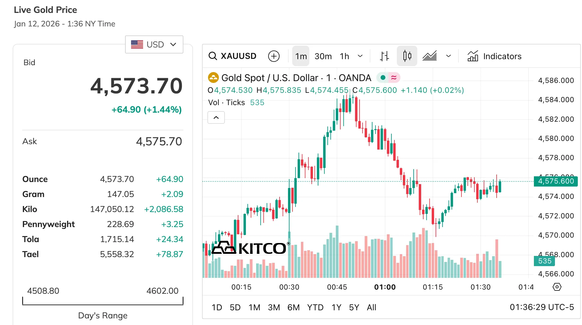 На мировом рынке цена золота также установила исторический рекорд — впервые в истории одна унция достигла четырёх тысяч шестисот долларов.